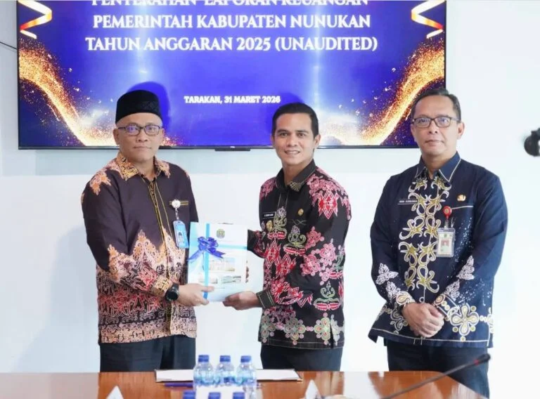 TARAKAN – Pemerintah Kabupaten Nunukan menunjukkan komitmen kuat dalam keterbukaan informasi keuangan daerah. Bupati Nunukan, H. Irwan Sabri, S.E., menyerahkan secara resmi Laporan Keuangan Pemerintah Daerah (LKPD) Unaudited Tahun Anggaran 2025 kepada Badan Pemeriksa Keuangan (BPK) RI Perwakilan Provinsi Kalimantan Utara, Selasa (31/03/2026).