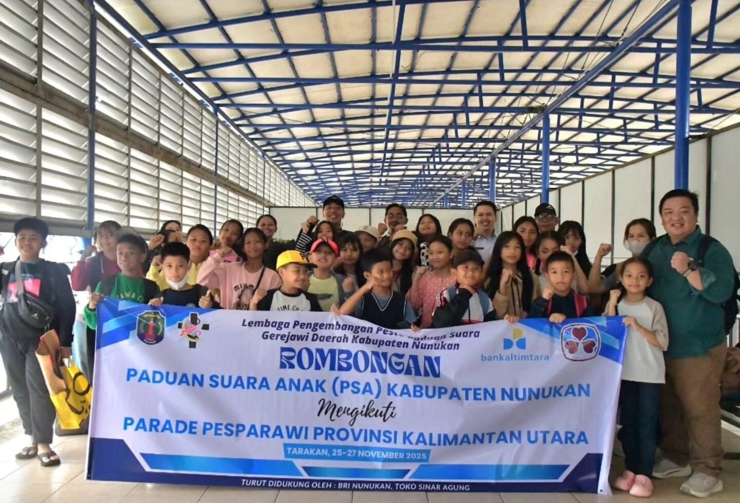 NUNUKAN — Mewakili Bupati Nunukan H. Irwan Sabri, Asisten Administrasi Umum Setkab Nunukan, Sirajudin, secara resmi melepas keberangkatan kontingen paduan suara Kabupaten Nunukan yang akan mengikuti Parade Musik Gerejawi Tingkat Provinsi Kalimantan Utara. Kegiatan tersebut menjadi ajang pemanasan menuju Pesparawi Nasional XIV tahun 2026 di Papua Barat.