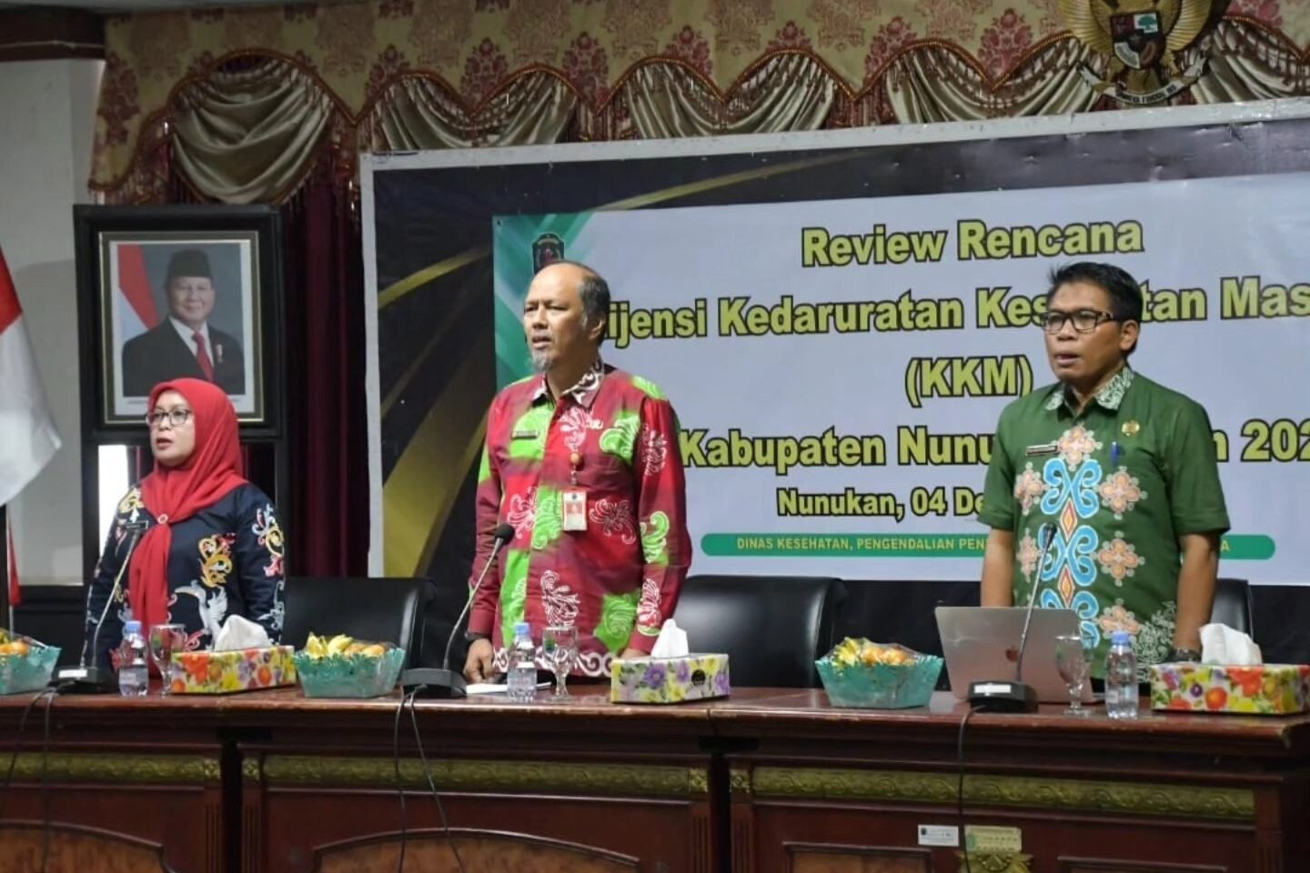NUNUKAN – Pemerintah Kabupaten Nunukan melalui Dinas Kesehatan, Pengendalian Penduduk dan KB Kabupaten Nunukan (Dinkes PPKB) menggelar Review Rencana Kontingensi Kedaruratan Kesehatan Masyarakat (Renkon KKM). Kegiatan ini dihadiri oleh Asisten Pemerintahan dan Kesra Muhammad Amin, SH, mewakili Bupati Nunukan H. Irwan Sabri, di Ruang Rapat VIP Lantai IV Kantor Bupati Nunukan, Kamis (04/12).